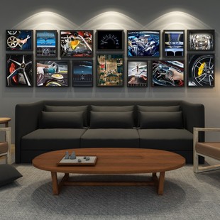汽车美容维修4S店装 饰挂画跑车摩托车实木照片墙车标LOGO相框组合
