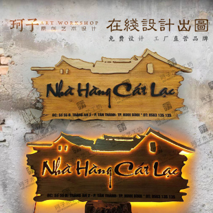 创意广告木制牌匾发光木牌民宿木雕装 饰门头招牌实木仿古牌匾定做
