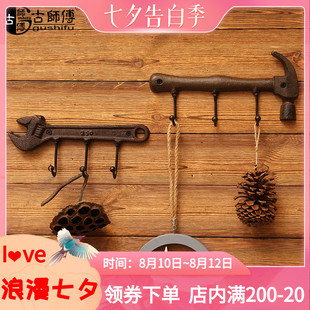 • 复古工业风铸铁工具装 饰挂钩衣帽钩子家居门后衣钩排钩锤子墙壁挂