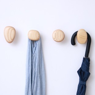 饰 衣帽架卧室客厅衣帽钩装 雨木 创意鹅卵石实木墙上挂衣钩壁挂式