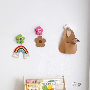 儿童衣帽钩蘑菇挂钩墙面衣帽架可爱田园实木壁挂幼儿园挂书包