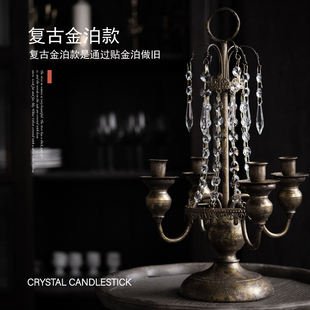 CHIC 家居摆件装 ROSE 复古做旧烛台 饰金属四头水晶烛台 欧式