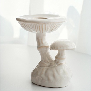 简单 饰摆件 奢华越南小众设计师蜡烛托手工森林风蘑菇烛台陶瓷装