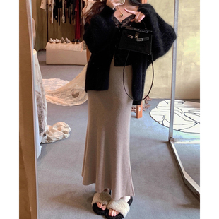 包臀鱼尾裙子 无托腹显瘦A字弹力修身 孕妇针织半身裙冬装 2025新款