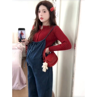 减龄俏皮直筒长裤 孕妇牛仔背带裤 外穿宽松时尚 春秋季 秋冬 2025新款