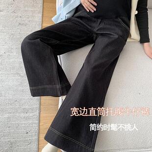 牛仔裤 时尚 阔腿裤 孕妇裤 女 大码 新款 韩版 春秋季 减龄孕期宽松直筒裤