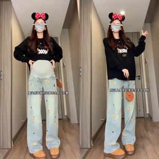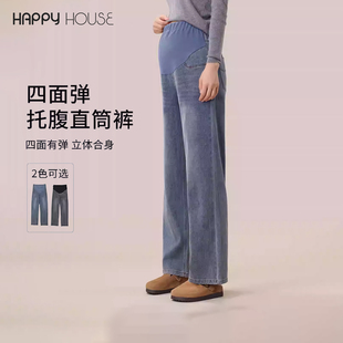 春秋2025新款 外穿托腹裤 时尚 显瘦直筒裤 子 孕妇裤 快乐屋孕妇牛仔裤