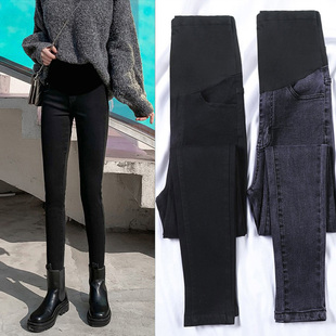 春季 长裤 大码 休闲牛仔加绒裤 孕妇裤 子春装 春秋外穿黑色小脚打底裤