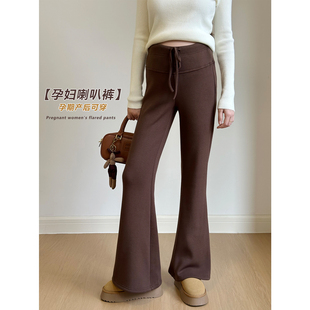 微喇休闲长裤 孕妇裤 外穿托腹针织加绒加厚喇叭裤 秋冬季 子2025新款