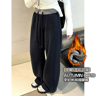 外穿不勒肚子直筒长裤 加绒加厚2025新款 子秋冬季 无托腹孕妇阔腿裤
