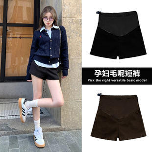 秋冬季 显瘦黑色托腹靴裤 外穿2025新款 阔腿打底裤 时尚 孕妇毛呢短裤