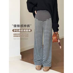 外穿不勒肚子孕期托腹宽松直筒长裤 2025新款 子秋季 孕妇条纹阔腿裤