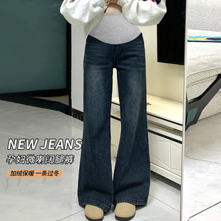 保暖托腹拖地阔腿裤 加绒加厚外穿2025新款 子秋冬季 孕妇微喇牛仔裤