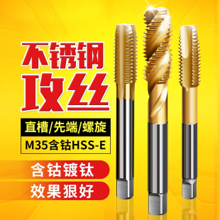 含钴镀钛不锈钢丝攻专用螺旋机用丝锥m3m4m6m8m10m12m16攻丝钻头