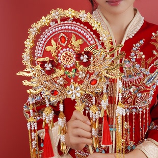 物语中式 婚礼新娘结婚团扇手工diy材料包高档成品扇出嫁喜扇重工