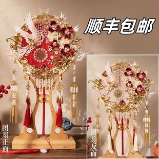 团扇新娘结婚diy材料包手工成品古风秀禾双面喜扇高级婚礼婚扇子