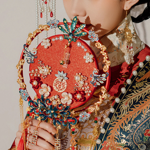 • 新款 婚礼新娘出嫁团扇diy双面结婚喜扇秀禾手捧 原创设计明制中式