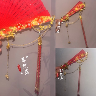 幕然居原创红色米珠蝴蝶折扇超仙花神百搭手持复古拍照古代cos婚