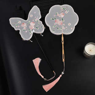 蝴蝶团扇国潮复古风仙桃刺绣扇子中国风古典跳舞拍摄道具长柄宫扇