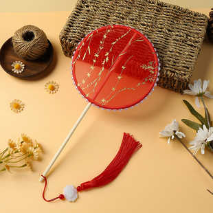 手工团扇古风汉服复古扇子长短柄刺绣花双圈宫扇舞蹈拍照中国风