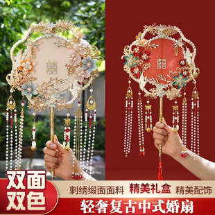 • 新娘团扇结婚双面喜扇秀禾出嫁古风婚庆扇子婚扇diy材料包成品扇