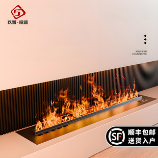 不锈钢3d雾化壁炉仿真火嵌入式 饰客厅地台火焰加湿器氛围灯1米 装
