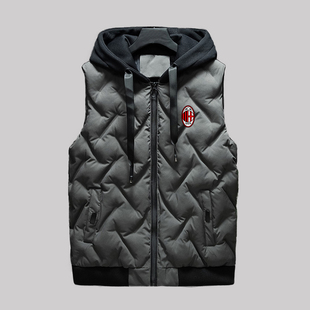 AC米兰足球运动背心加厚连帽棉服马甲Milan意甲可脱卸帽开衫 外套