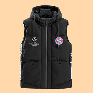 拜仁慕尼黑羽绒棉马夹欧冠足球棉衣加厚外套男女冬款 保暖训练马甲