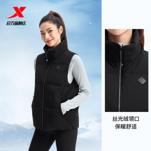 特步立领羽绒马甲女2025冬季 女防风保暖鸭绒外套975428260035 新款