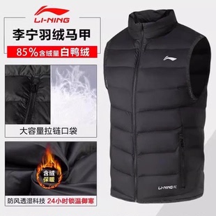 男装 2025新款 立领上衣鸭绒保暖背心男运动服 冬季 李宁羽绒马甲男士