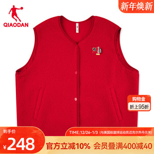 乔丹马上有钱红色马夹女士2025冬季 新年本命年抓绒外套女 商场同款