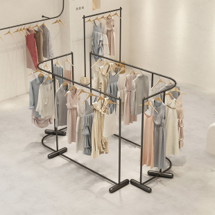 • 服装 店专用货架 店展示架橱窗陈列架网红移动双层挂衣架落地女装