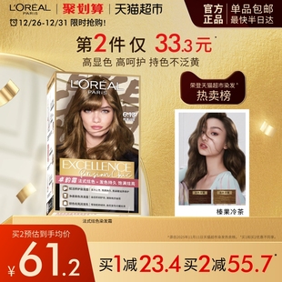 欧莱雅卓韵霜染发膏女赛博蓝黑榛果冷茶橄榄茶棕薄荷青棕染发剂霜