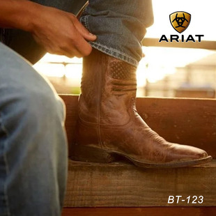 方头牛仔靴 男款 骑马马靴皮底 西部牛仔靴 美国进口Ariat