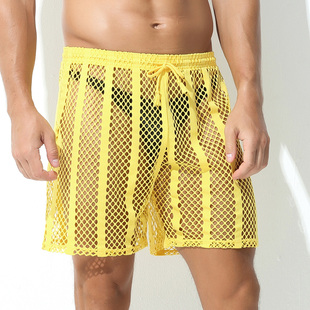 宽松系带镂空沙滩裤 男士 速干透明五分裤 男款 男生 性感网孔短裤
