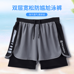 防尴尬速干温泉游泳专业泳裤 安尼欧双层男士 泳裤 宽松大码 新款