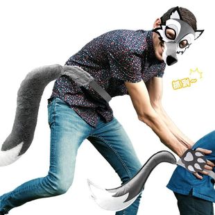 成人儿童大灰狼装 尾巴面具三件套亲子互动派对表演玩具道具 扮套装