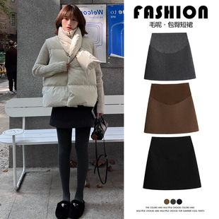 小个子托腹显瘦A字包臀短裙 韩版 孕妇毛呢半身裙子秋冬季 2025新款
