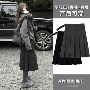 孕妇五分毛呢百褶半身裙秋冬外穿时尚 韩系减龄显瘦无托腹伞裙中裙