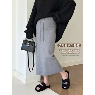 无托腹灰色孕妇针织半身裙女秋冬季 小个子孕期开叉直筒裙子 中长款