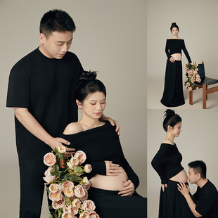 拍照孕妇装 室内简约风高级感孕妈大肚照黑色两件套 2025孕妇照服装