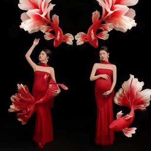 影楼孕妇新款 拍照服新年锦鲤主题中国风孕妈咪写真服大肚照摄影服