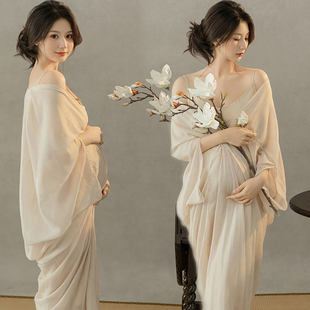 影楼孕妇主题新款 连衣裙艺术拍照摄影 复古冷淡高级禅意压皱新中式