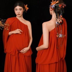 红色抹胸连衣裙孕妈咪艺术照写真摄影服装 影楼新款 孕妇主题中式