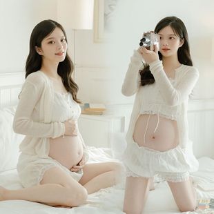 纯欲风大肚照室内孕妈咪写真摄影在家拍 法式 影楼新款 孕妇拍照服装