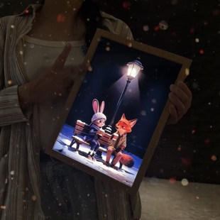 尼克朱迪氛围小夜灯疯狂动物城2灯光画装 饰创意高颜值相框送女友