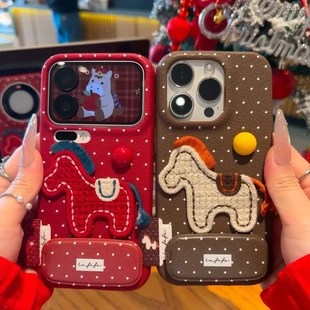 波点小马支架适用苹果iPhone手机壳17皮纹支架_ZY 下单立减50