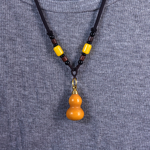 精品天然草里金小葫芦挂件 把玩镶口手把件饰品吊坠脖挂项链