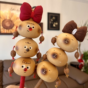 纯手工非遗烙画天然文玩葫芦拨浪鼓冰糖葫芦串桃核国潮可爱工艺品