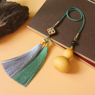 天然开口真葫芦镶嵌铜盖双流苏绿色穗子车挂件后视镜车内挂吊饰品